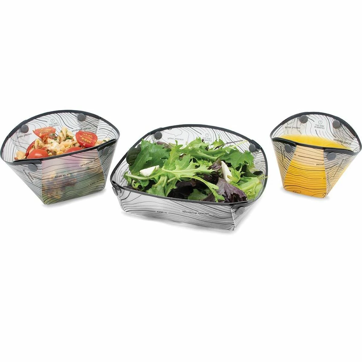 The worldβs lightest pack flat tableware! Innovative folding design saves space and packs flat. Large capacity, built-in measuring lines for meal prep, and easy clean surfaces. Fozzils are the choice of guides, cyclists, and outdoor enthusiasts around the world. Perfect for treks, travel, kayaks, picnics, pets, etc. Includes Cup, Bowl, and Dish. BPA free.