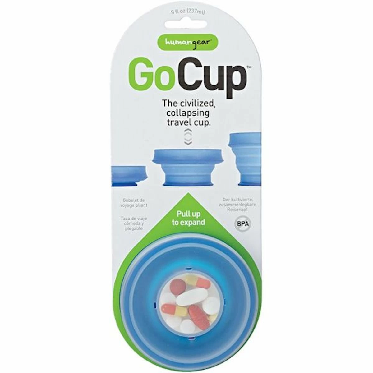 The GoCup from Humangear is is made from FDA food-grade silicone, making for a collapsing cup that is 100% leakproof. A press-fit lid keeps things clean during transport and features an integrated pill holder. 100% BPA-free, PC-free, and phthalate-free.