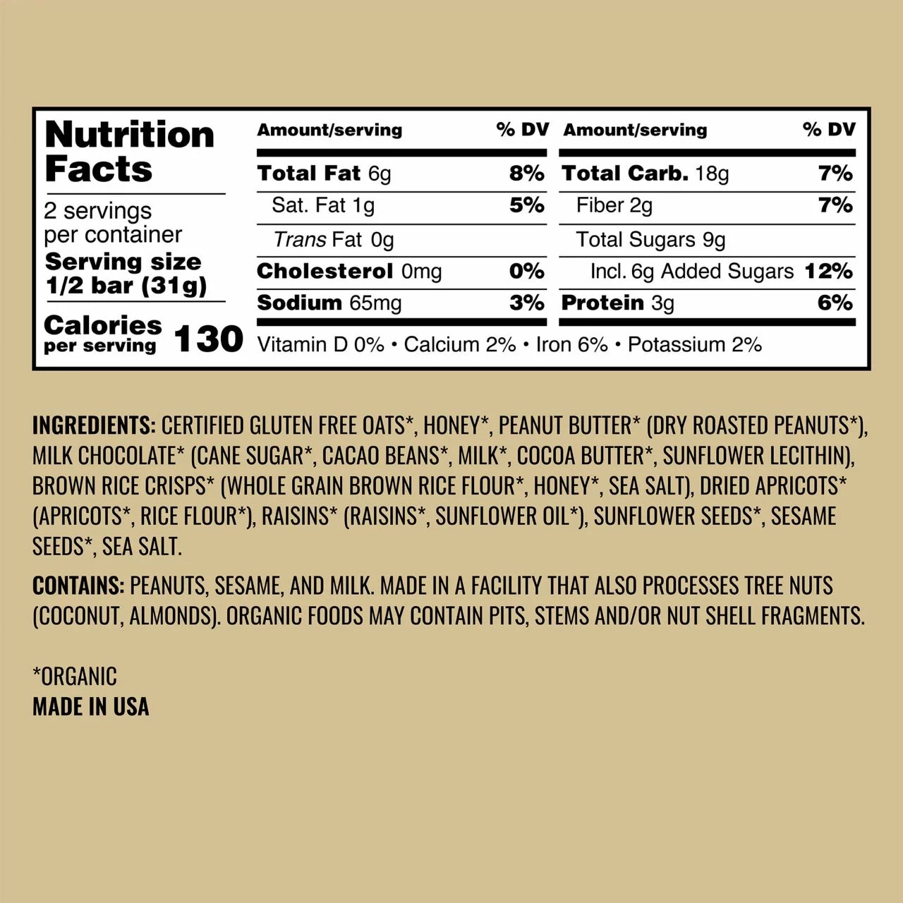 These Peanut Butter Milk Chocolate Bars pack in 3 grams of protein per serving to help fuel your outdoor adventures or busy day. All of Kateβs Real Food products are made with certified gluten-free oats, making them a good choice for those with gluten allergies or intolerances.