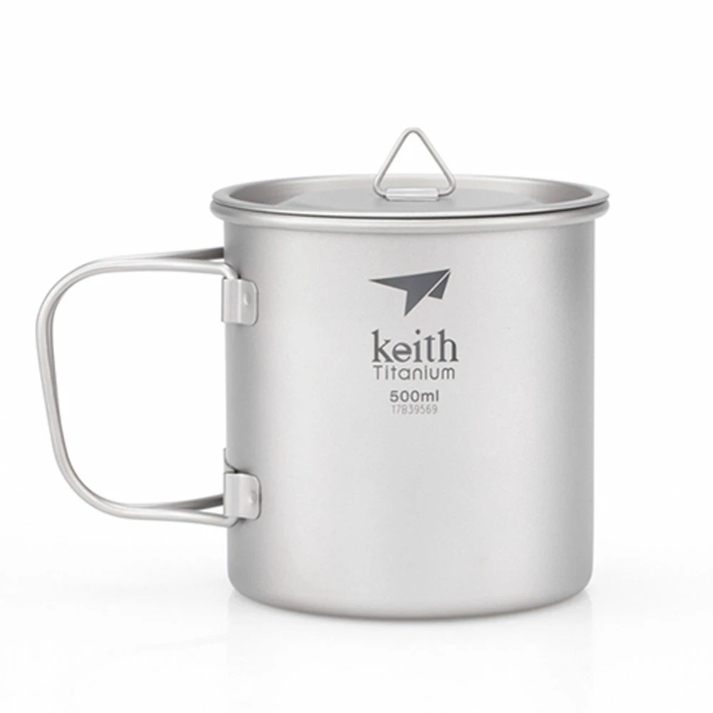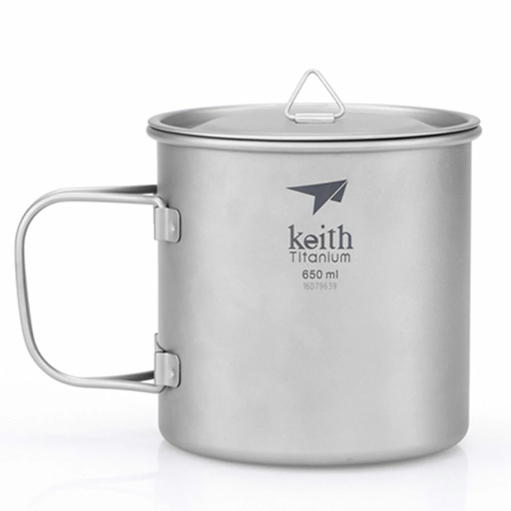 The Single-Wall Titanium Mug with Folding Handle and Lid from Keith is a minimalist’s dream with its durable ultralightweight titanium construction.
