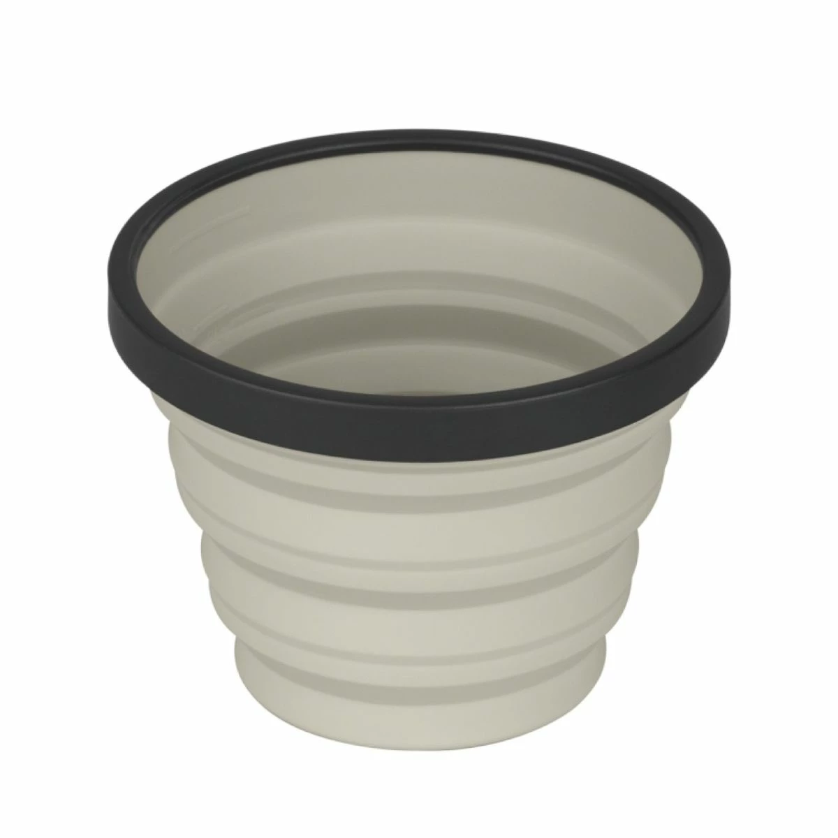 The Sea to Summit X-Cup is constructed from a flexible, European standard compliant, food grade silicone. A rigid ring within the rim keeps it sturdy and easy to drink out of but still allows the cup to be collapsed into a flat disk that will fit almost anywhere.