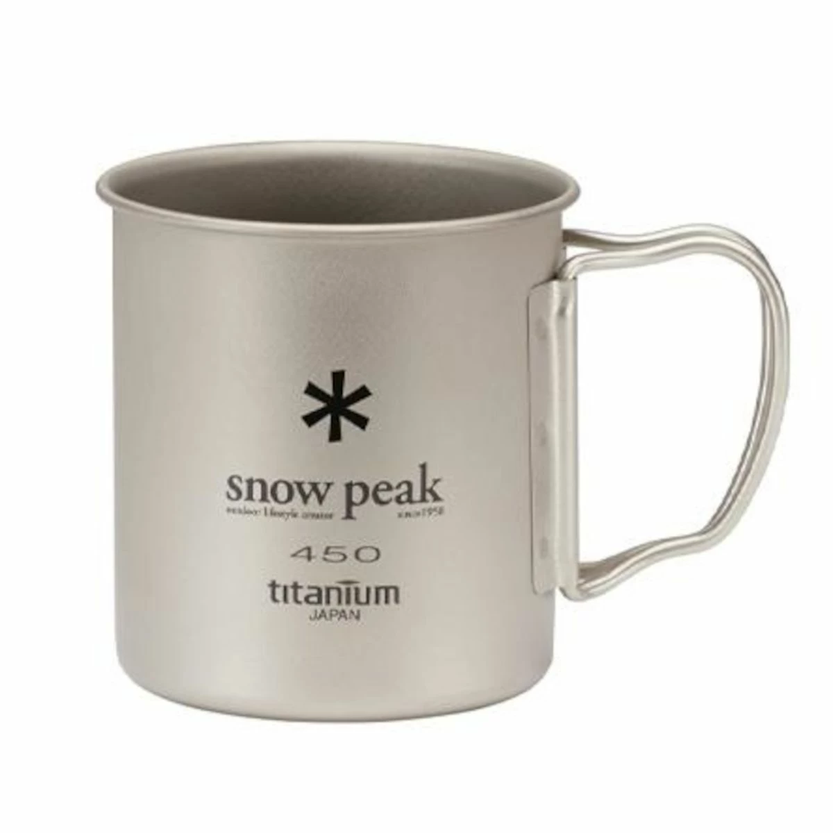 The Snow Peak Titanium Single Cup 450 is a single wall, 14 fluid oz., titanium cup/pot with an ergonomic handle weighing in at 2.4 oz. The 450 is a favorite among weekend warriors.